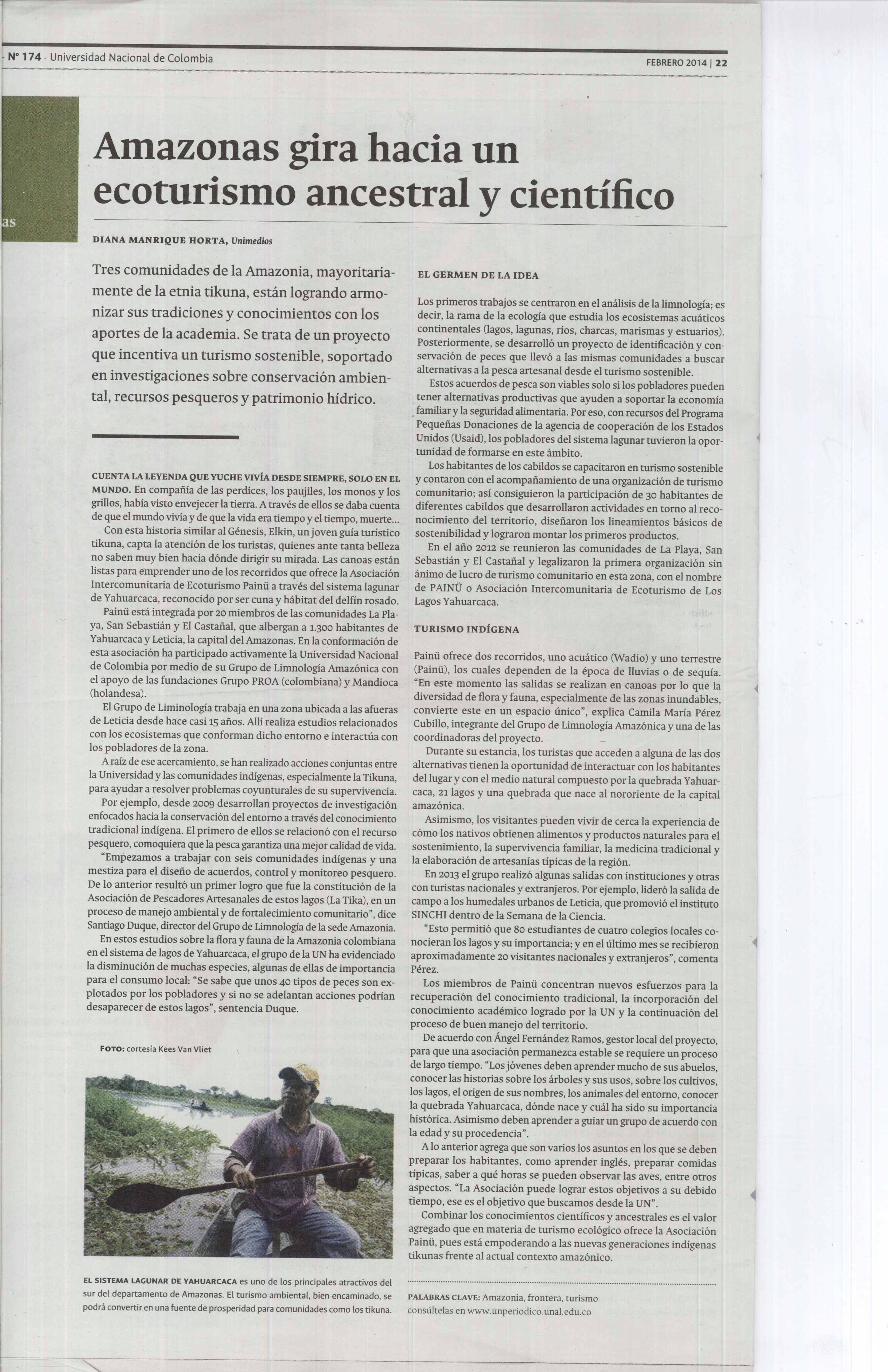 Voor ons Tikuna, Yagua en Cococama zijn deze bomen erg belangrijk, sacraal zogezegd. Als deze bomen er niet geweest zouden zijn zouden wij ook geen vis hebben om te eten. Als deze bomen met rust worden gelaten zal de vispopulatie ook weer toenemen in de beken en meren.